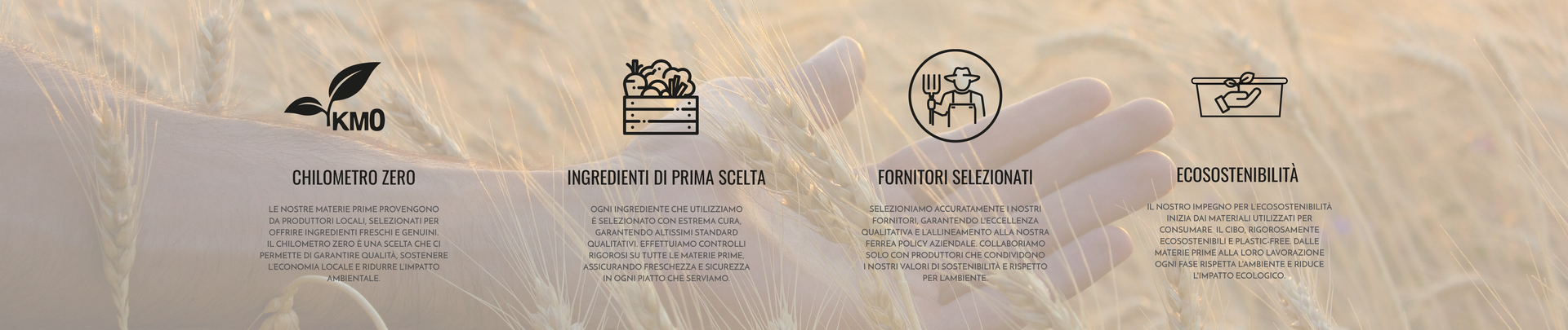 Utilizziamo solo ingredienti a chilometro zero e di prima qualità, rispettando la sostenibilità.